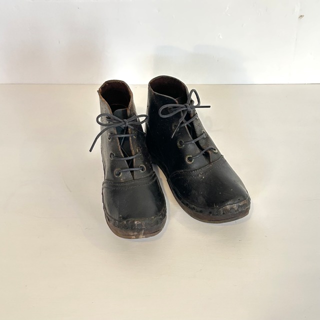 イギリスで手に入れた子供用の木靴です。 19世紀、ヴィクトリア女王の時代に使用されていた物です。 ソールは木製でアウトソールには鉄が打ち付けてあり、アッパーはレザーです。 アッパーには経年のダメージがあります。 非常に古い物です。状態は画像にてご確認下さい。 ▪️size W 70 L 180 H 120 mm (片足のサイズ) ※一部離島への送料については別途料金がかかる場合がございます。 ※沖縄県はゆうパックで発送いたします。 (a24081)
