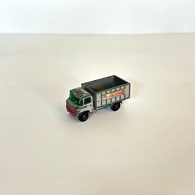 イギリス、Lesney社のミニカー、マッチボックスシリーズ、No.11 MERCEDES SCAFFOLDING TRUCKです。 1969年の製品です。 車輪のシャフトに歪み、経年のキズ、サビ、塗装の剥がれがあります。 画像でご確認ください。 ▪️size L 65 mm ※一部離島への送料については別途料金がかかる場合がございます。 ※沖縄県はゆうパックで発送いたします。 (a24065)