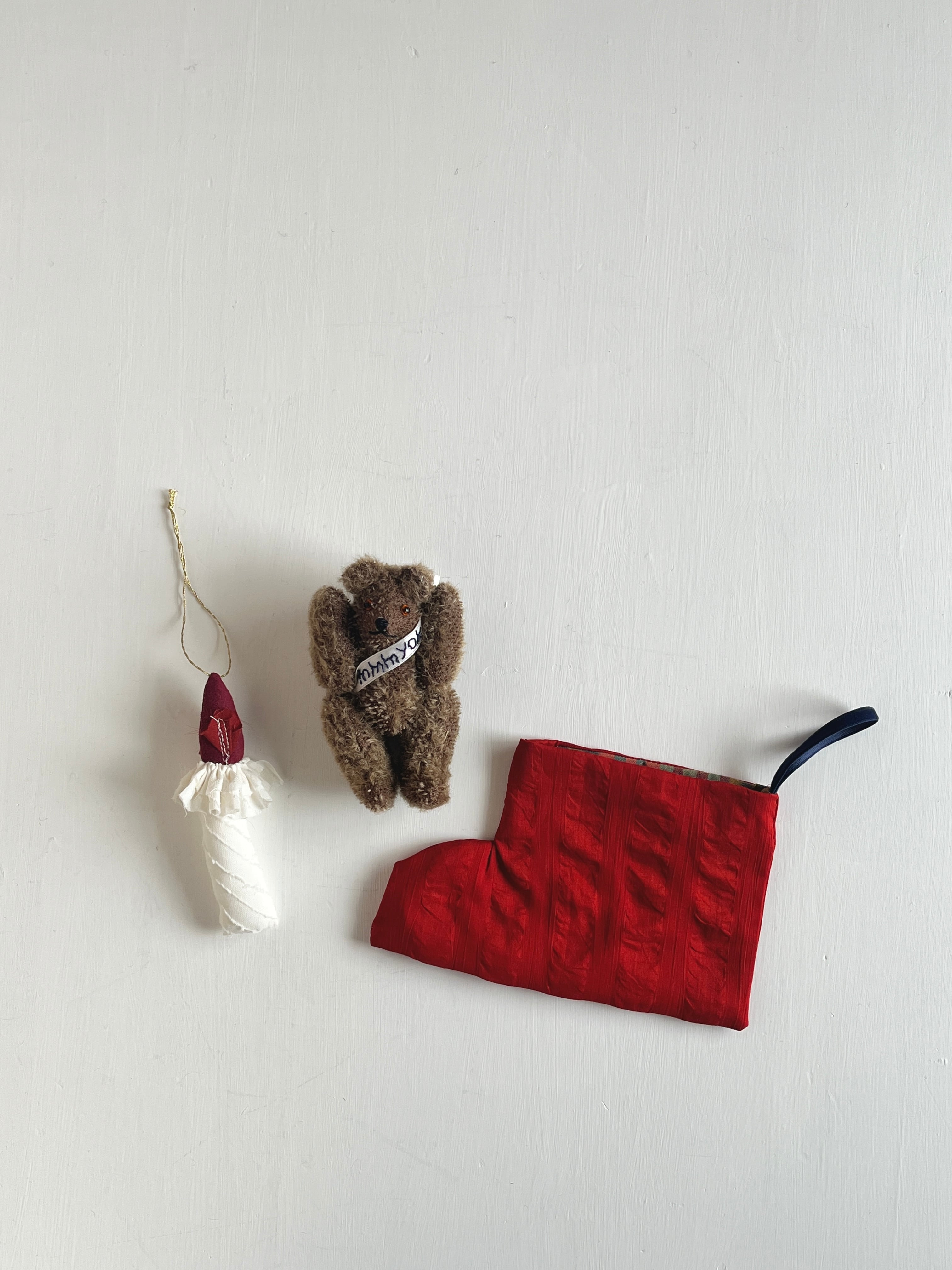 テディベア、ブーツ、キャンドル飾りの3点セットです。