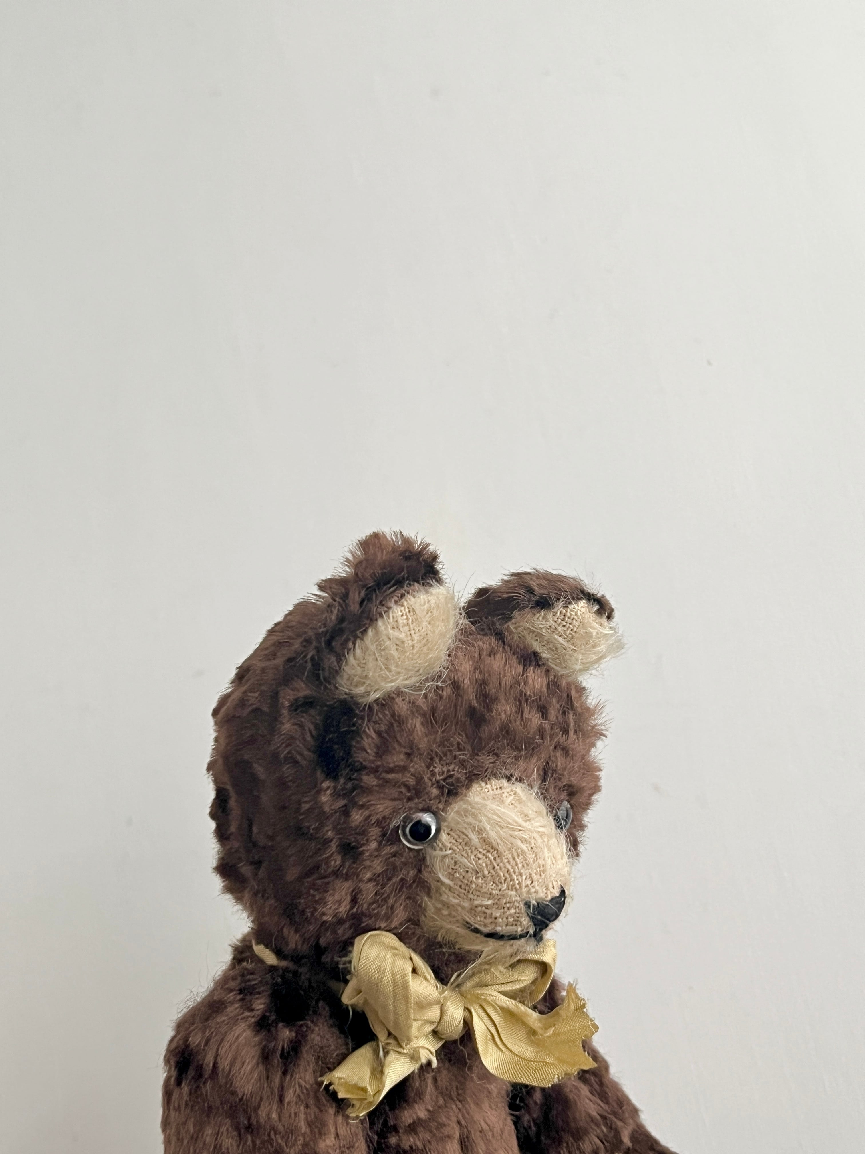 ヴィンテージ のウェービーなシルク素材を使っています。風格のあるベア。