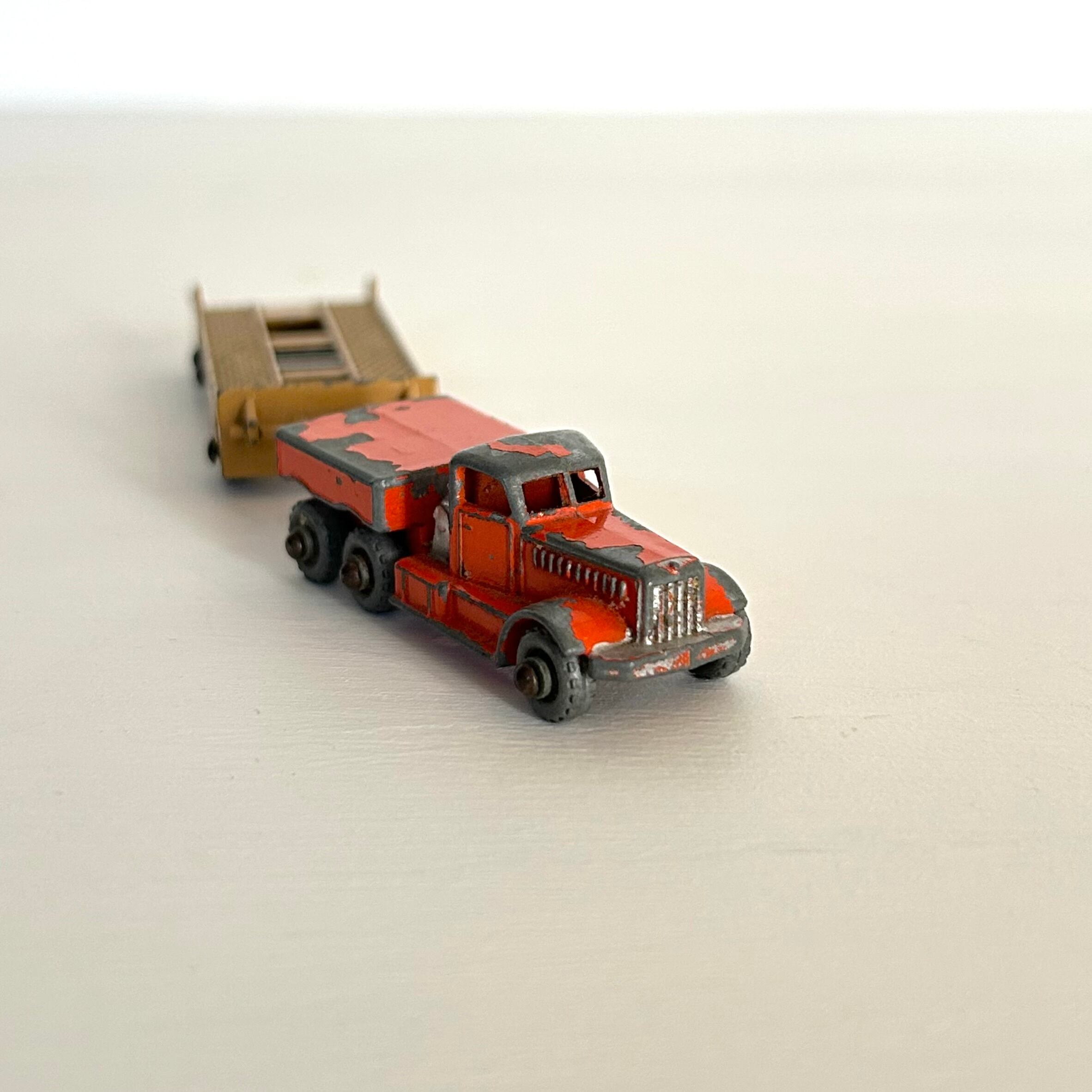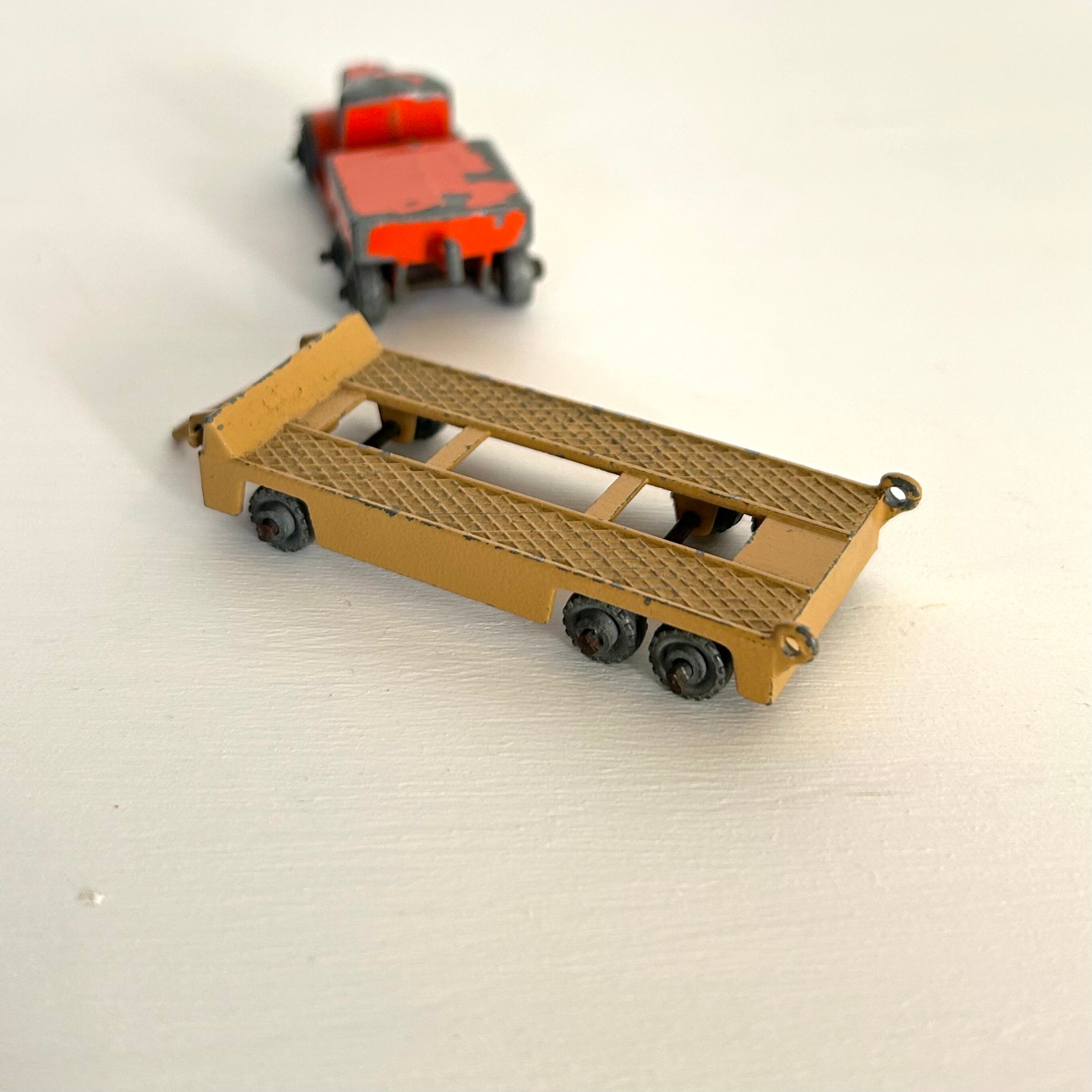 イギリス、Lesney社のミニカー、マッチボックスシリーズ、No.15 Diamond T Prime Mover とNo.16 Atlantic Trailer のセットです。