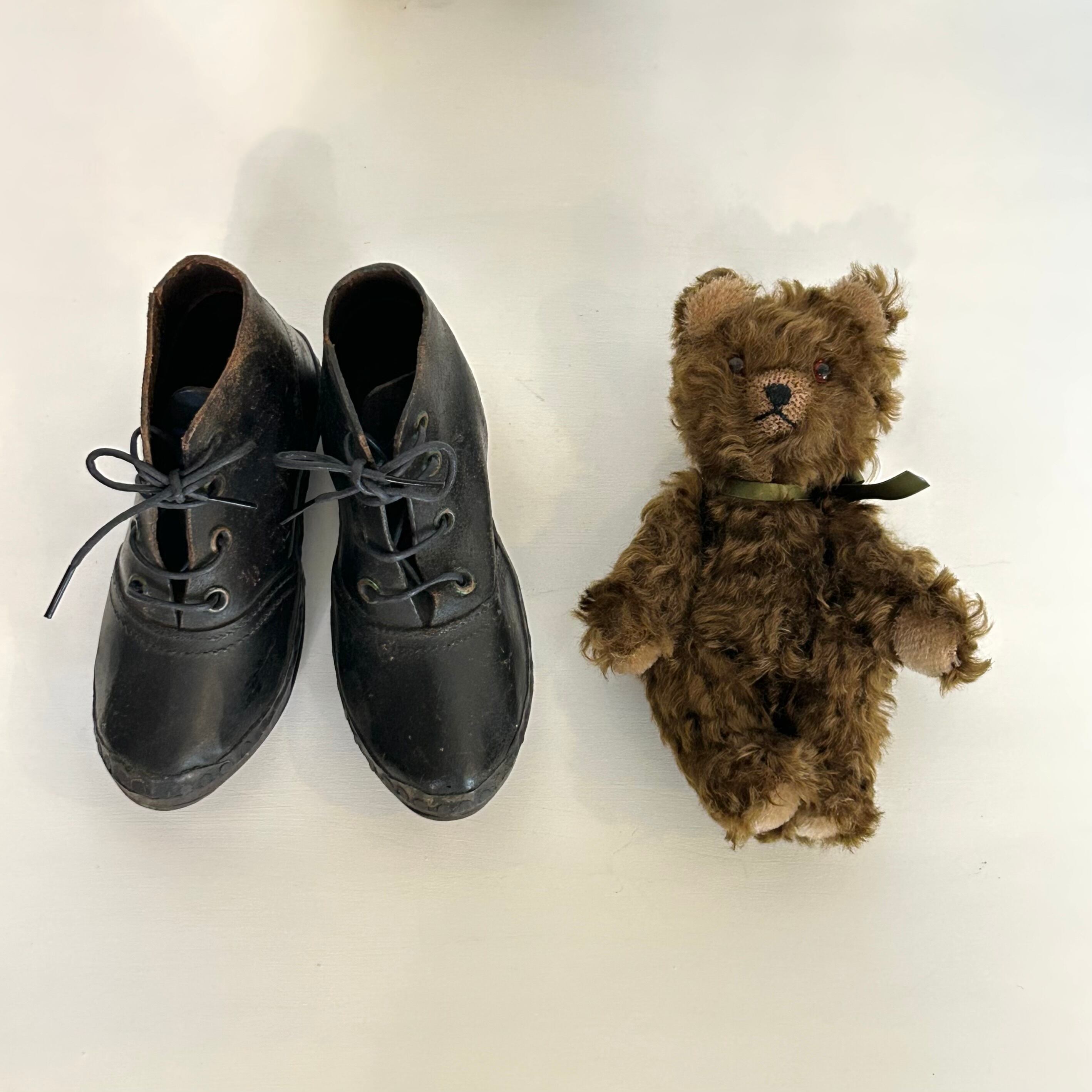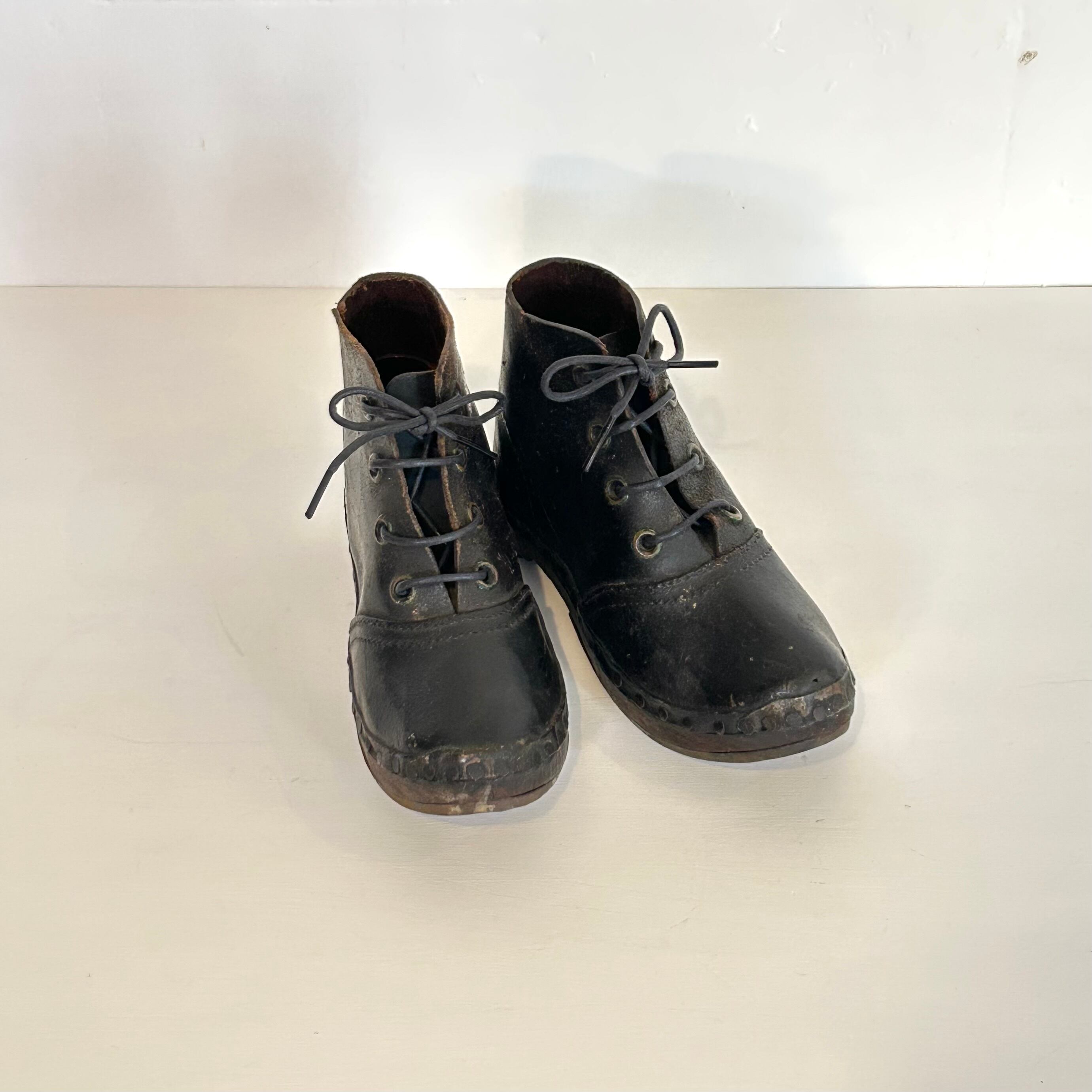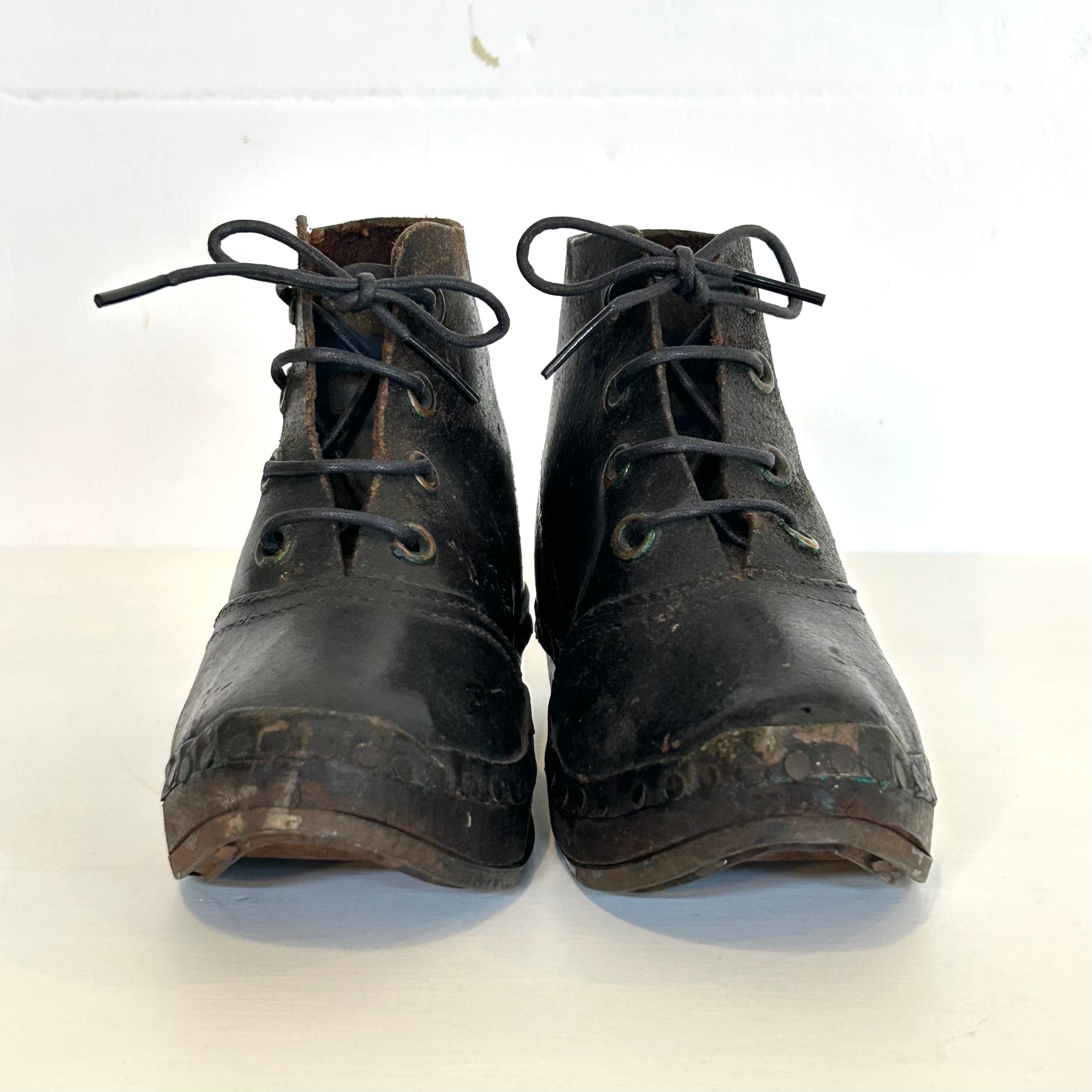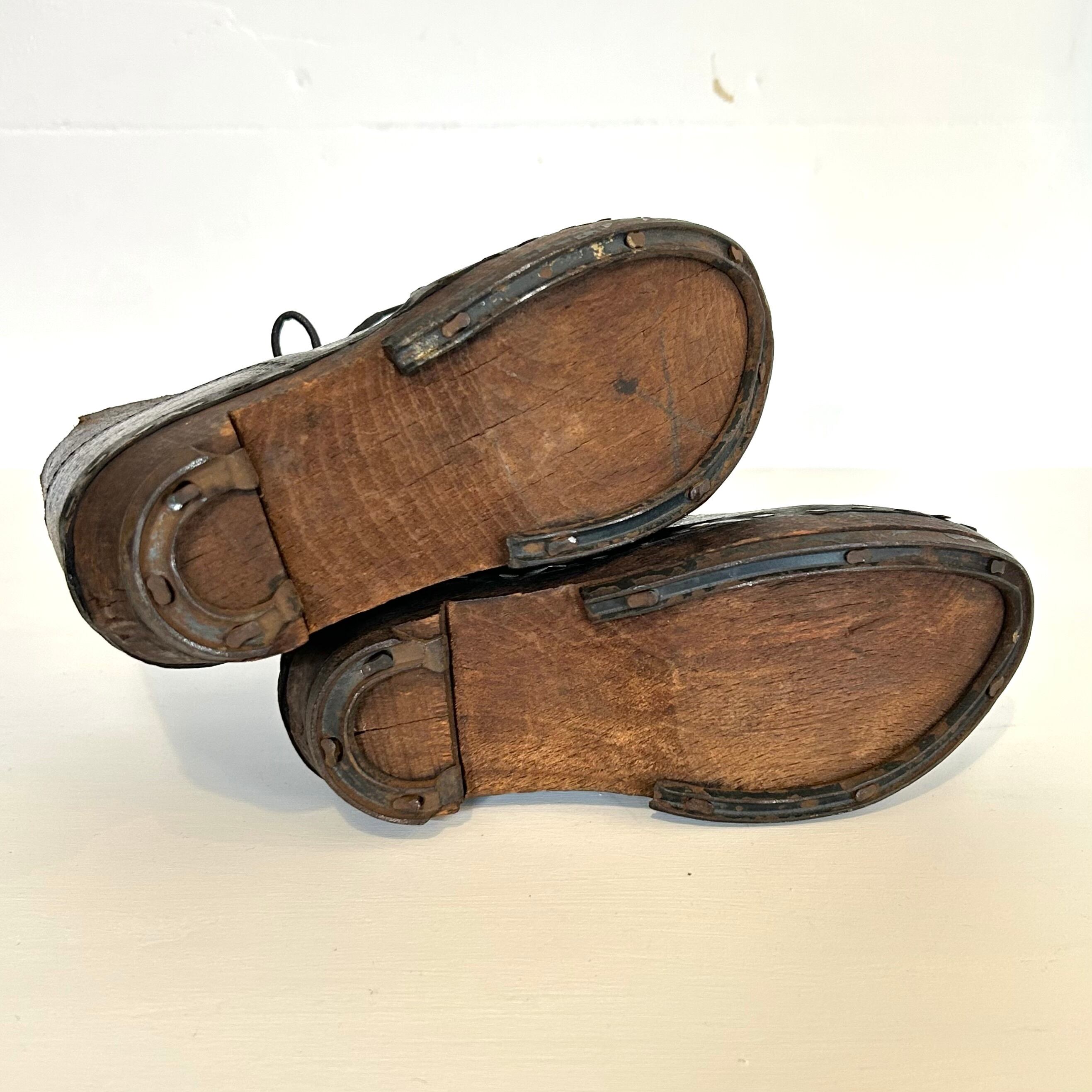 ソールは木製でアウトソールには鉄が打ち付けてあり、アッパーはレザーです。