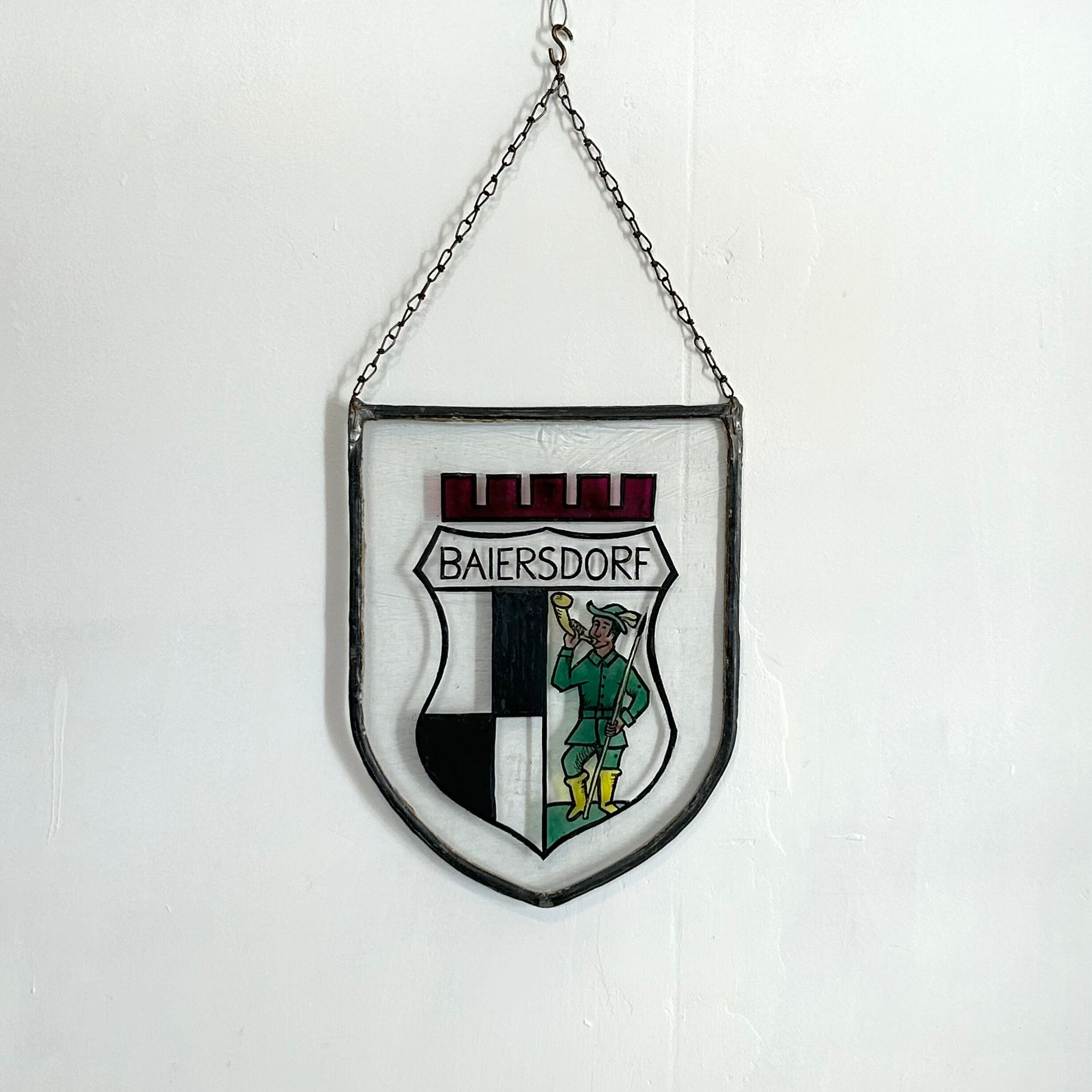 ドイツ、バイエルン州の町、Baiersdorf の紋章で、ガラスにハンドペイントで描かれています。